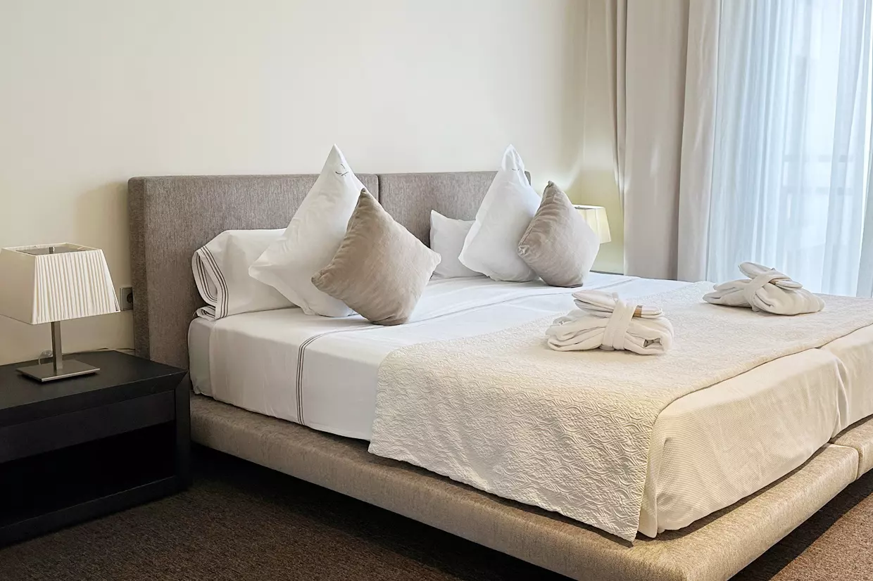 Criada especialmente para momentos inesquecíveis em família, a nossa Suite Familiar de 40 m² oferece a combinação perfeita entre espaço, conforto e charme litoral. Esta suite elegantemente concebida dispõe de dois quartos interligados: um com uma cama de casal extra grande e o outro com duas camas individuais – ideal para famílias até quatro pessoas (2 adultos + 2 crianças). Relaxe na convidativa sala de estar ou desfrute de um banho relaxante na casa de banho bem equipada com banheira. A suite inclui ainda comodidades modernas, como Wi-Fi de alta velocidade de cortesia, televisão de ecrã plano, minibar, secretária e uma confortável área de estar. Com vista parcial para o mar e interiores cuidadosamente planeados, esta suite cria um ambiente sereno para um retiro familiar tranquilo e requintado. Atenção: não é possível adicionar camas extra.