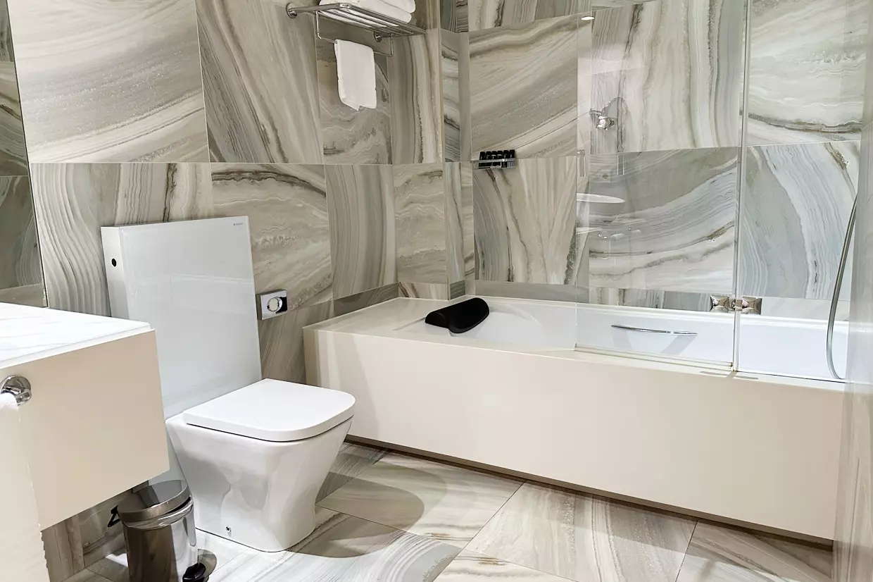 Entre no ambiente sofisticado da nossa Suite Twin — um retiro elegante cuidadosamente criado para dois hóspedes que procuram elegância e conforto. Com 17 m² de espaço requintado, esta suite dupla dispõe de duas camas de solteiro macias, o que a torna ideal para amigos, colegas ou viajantes que preferem acomodações separadas para dormir. Concebido com atenção aos detalhes, o quarto inclui casa de banho privativa, televisão por satélite, minibar e roupões macios para um toque adicional de luxo. Por favor, note que este quarto não dispõe de varanda e não pode acomodar camas extra ou berços. Cada elemento da Suite Twin reflete uma sofisticação tranquila, oferecendo uma atmosfera tranquila onde pode relaxar com conforto e estilo.